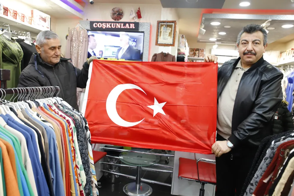 Türk Bayrağı dağıtımı gerçekleştirildi. Belediye ekipleri tarafından tek tek ziyaret edilen esnaflara ay