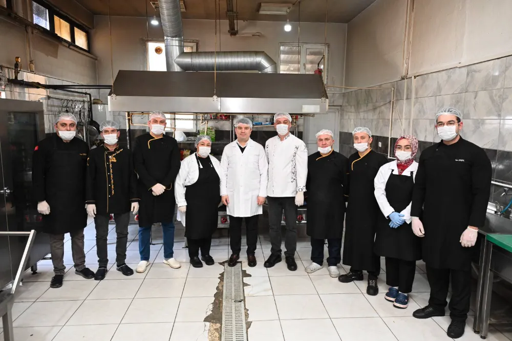 Başkan Dr. Evren Dinçer, belediye mutfağında üretilen günlük 5 bin kişilik yemeğin bir kısmının iftar