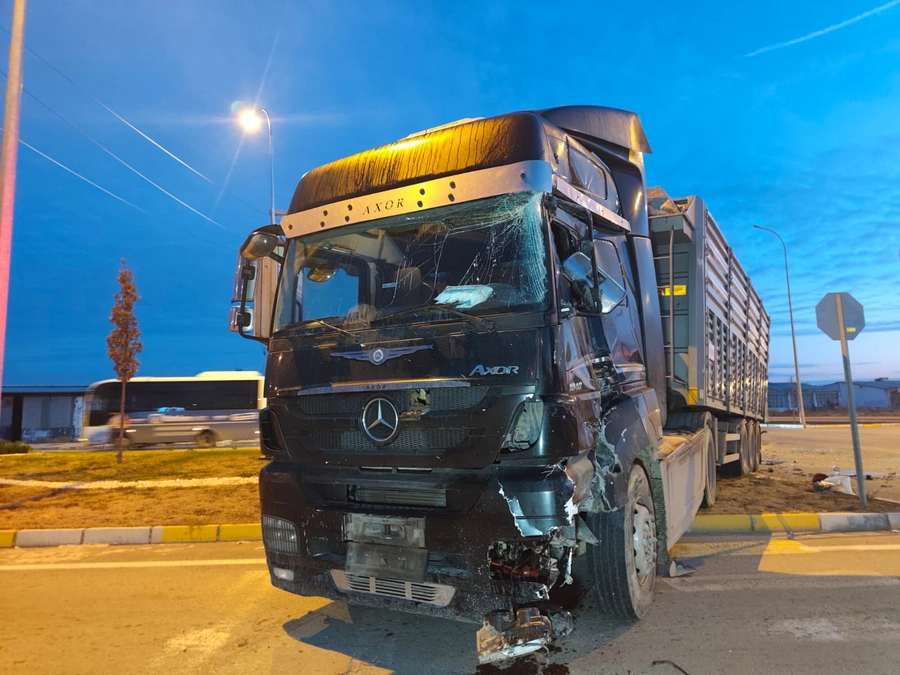 Kaza, saat 06.30 sıralarında Tacin Mahallesi Tacin Caddesi 98. Kavşak’ta meydana geldi. Edinilen bilgilere göre, 06 DT … plakalı tırı kullanan Ramazan A. (24) ile 68 HO … plakalı halk otobüsünün sürücüsü Adem K. (52), bilinmeyen bir nedenle kavşakta çarpıştı.