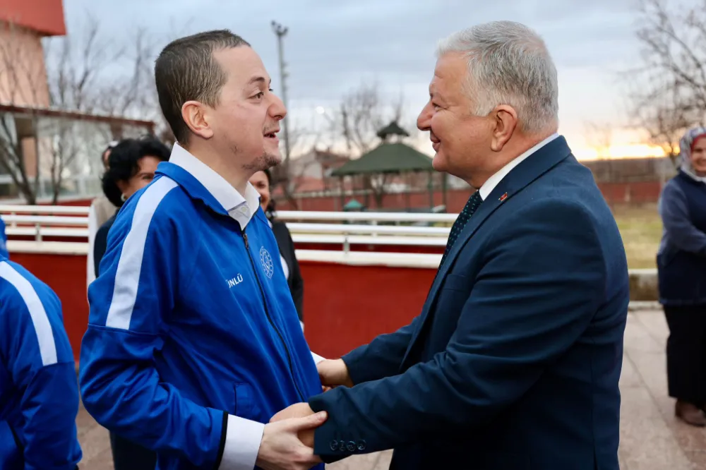 Aksaray Bakım, Rehabilitasyon ve Aile Danışma Merkezi’ni ziyaret etti. Ziyaret kapsamında merkezde kalan özel bireylerle bir araya gelen Vali Duru ve eşi Elif Duru Hanımefendi, özel bireylerle yakından ilgilenerek sohbet etti. Merkezde yürütülen çalışmalar hakkında yetkililerden bilgi alan Vali Duru, devletin sosyal devlet anlayışı çerçevesinde her zaman özel bireylerin yanında olduğunu vurguladı. Ziyarette konuşan Vali Murat Duru, sevgi, dayanışma ve anlayışla engellerin aşılabileceğini ifade ederek, merkezde sunulan eğitim ve mesleki faaliyetlerin büyük önem taşıdığını belirtti. Merkezin, sosyal devlet anlayışının somut ve kıymetli bir örneği olduğunu dile getirdi. Konuşmaların ardından merkezde kalan özel bireylerden Çavuş, “Biz Engelliyiz” adlı şiirini okudu. Şiirin ardından yaptığı kısa konuşmada engellerin umut ve sevgiyle aşılabileceğini ifade eden Çavuş, duygusal anlar yaşattı. Ziyarette Aile ve Sosyal Hizmetler İl Müdürü Nurettin Ulaş da merkezde yürütülen çalışmalar hakkında bilgi vererek, merkezde 72 özel bireyin kaldığını, özel bireylere ve ailelerine yönelik danışmanlık hizmetleri sunulduğunu belirtti. Ulaş ayrıca el sanatları, galoş ve rölyef atölyelerinde mesleki destek sağlandığını ve çeşitli sosyal etkinlikler düzenlendiğini ifade etti. Vali Murat Duru ve eşi Elif Duru Hanımefendi, ziyaret kapsamında merkezdeki yaşam alanları, atölyeler ve ortak kullanım alanlarını gezerek incelemelerde bulundu.